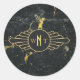 Black Gold Marble Three Letter Monogram Art Deco Classic Round Sticker
