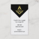 Black and gold custom masonic business card templates designed with a modern and classy flare. Personalise this quality card with your own info, and feel confident in handing them out at your lodge meetings or other networking events for masons. The top background colour is easily customised, and the back of the card is left blank for writing. Features a modern, gold square and compass of the freemasons. Initial example shown is single-sided on thick, quality card stock. Category: masonic business cards; freemason business cards; and freemasonry, Colour tones: gold, black, white.