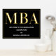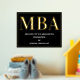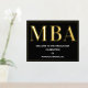An MBA graduation party welcome sign poster with gold foil, white text, and a black background. Simply add your information, add this poster to your cart, and celebrate this major accomplishment.