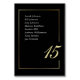 This minimal black, gold and white table number card is bold and elegant. The script typography table number is accentuated by border that frames the number. Add your guests' names to create a seating chart as well.