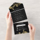 Black Gold Minimalist Floral Script Wedding All In One Invitation
