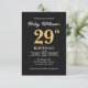 Black Gold Minimalist Modern Simple 29th Birthday Invitation