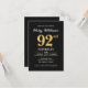 Black Gold Minimalist Modern Simple 92nd Birthday Invitation