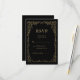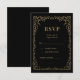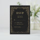Invite guests to reply in style with this minimalist black and gold wedding RSVP card. The rich black background pairs with refined gold accents for a luxurious and modern look. Clean lines and clear text ensure easy readability and a polished, print ready finish that enhances any elegant wedding suite.