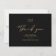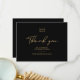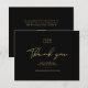 This modern black & gold thank you card design features stylish typography "Thank you" and custom text with social media icons. Perfect insert card for your product packaging. More business stationery designs available at my shop BaraBomStudio.