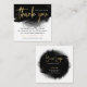 Modern custom logo business thank you card with black watercolor background and gold effects. You can add your social media details to create personalised customer thanks for purchase cards. Add the finishing touch to your orders with this luxury black and gold thank you note design.