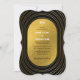 A beautiful combination of black and faux gold with a dash of white. The minimalist oval arch lines create a modern geometric sophisticated contemporary style. Elegant wedding invitations and stationery design with modern elements. The simple setup of the typography gives it a distinct look. Matching wedding stationery items and other wedding invite formats are also available.