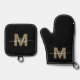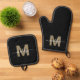 Black Gold Modern Name Monogram Oven Mitt & Pot Holder Set