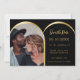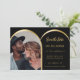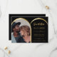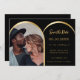 On front: Add your own vertical size photo. Faux gold photo arch frame. A black background, golden text. Personalise and add your names and the date.