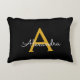 Black Gold Modern Script Girly Monogram Name Decorative Cushion