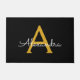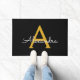 Black and Gold Simple Script Monogram Name and Initial House Doormat. This makes the perfect sweet 16 birthday, wedding, bridal shower, anniversary, baby shower or bachelorette party gift for someone that loves glam luxury and chic styles.