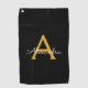 Black Gold Modern Script Girly Monogram Name Golf Towel