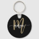 Black Gold Modern Script Girly Monogram Name Key Ring