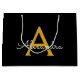 Black Gold Modern Script Girly Monogram Name Large Gift Bag