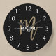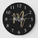 Black Gold Modern Script Monogram Name Large Clock
