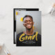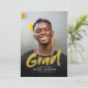 Modern brush script Graduation Announcement with 4 photos in black and gold, simple and unique. Custom it with your own photos and grad party information.