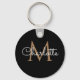 Black Gold Monogram Elegant Feminine Script Key Ring