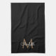 Black Gold Monogram Elegant Girly Script Tea Towel