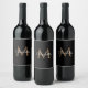 Black Gold Monogram Elegant Script Wine Label