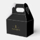 "Add a touch of elegance to your event with this Black & Gold Monogram Favour Box. Perfect for weddings, parties, and special occasions, it features a sleek black design with a personalised gold monogram, making it an ideal choice for gifting your guests."