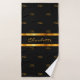 Black gold monogram initials pattern name script bath towel
