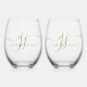 Black Gold Monogram Script Name Stemless Wine Glass