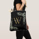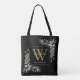 Black Gold Monogram Watercolor Greenery Leaves Tot Tote Bag