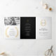 Black gold monogram wreath story & program wedding Tri-Fold programme