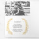 White black and gold hand-drawn oval leaf botanical art wreath monogrammed wedding program with your own love story and remembrance sections. Personalise this wedding trifold program with your own wedding ceremony details, party names, photo and love story, and dedications. Simple leaf oval-shaped design with your own monogram in gold on black and white. Other colours and matching wedding items available. © Original leaf hand drawing and design by Sarah Trett for www.mylittleedenweddings.com on Zazzle.