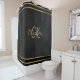 A black background decorated with faux gold stripes. Personalise and add your monogram initioals and first name.