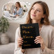 A black coloured background. The motivational quote: Drem. Plan. Bloom. Personalise and add your name and year.