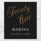 A black background. Twenty One written with a faux gold script. Personalise and add a name and date.