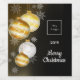 Personalise and add your your business, company logo for a Christmas event or as gifts for your loyal customers or employees. With the text: Merry Christmas, modern white hand lettered style script. Template for a year. Decorated with classic faux gold Christmas tree ornaments and snowflakes on a black background.
