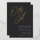 A beautiful typography based wedding invitation featuring your initials in oversized gold foil script lettering at the top. Personalise with your wedding details in classic serif lettering aligned at the lower right. Our Ash colorway makes a classic statement with crisp white and gold foil lettering on a soft black background.