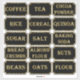 Keep your kitchen beautifully organized with this elegant black and gold pantry label set. Featuring classic typography framed in a refined border, these stickers are perfect for labeling jars, containers, and canisters. The set includes labels for everyday essentials like coffee, tea, sugar, salt, flour, rice, oats, nuts, baking soda, and more — all designed to bring timeless style and order to your shelves. Ideal for home cooks, bakers, and anyone who loves a tidy, coordinated pantry.