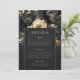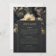 This luxurious wedding details card features dramatic black peonies with soft gold accents, creating a moody yet refined vintage aesthetic. Designed to complement gothic, witchy, and dark floral wedding suites, it provides a stylish way to share reception, accommodation, and additional event information. The deep charcoal-black background paired with elegant gold typography adds a sense of timeless romance and sophistication. Fully customizable text allows couples to personalize every detail to fit their celebration. Perfect for romantic evening weddings, autumn ceremonies, or modern gothic themes. A cohesive and elegant addition to a complete dark floral wedding stationery set.
