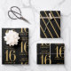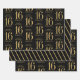 Black and gold birthday gift wrapping paper with editable age number and personalised name plus a diagonal stripe accent sheet for an elegant and bold birthday present display.