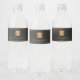 Luxury elegant black leather look (PRINTED) custom water labels with a copper gold metallic glitter monogrammed square, horizontal lines, and personalised name signature script. +++++++++ You can find all bottle labels variants in the collection COPY AND PASTE LINK: https://www.zazzle.com/collections/monogram_personalized_black_gold_gifts-119940943996290001