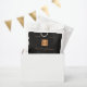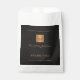 Luxury elegant black leather look thank you favour bag with a gold glitter monogrammed square and personalised name signature.