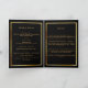 An elegant 4-page program. A black background, a faux gold frame and space for your photo on the front. Personalize and add name, dates and your text.
