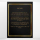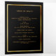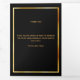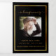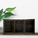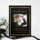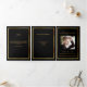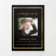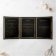 An elegant tri-fold program. A black background, a faux gold frame and space for your photo. Personalise and add name, dates and your text.