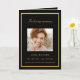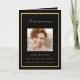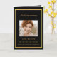 An elegant 4-page program. A black background, a faux gold frame, and space for your photo on the front. Personalise and add name, dates and your text. Golden text.