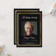 An elegant 2-page program. A black background, a faux gold frame, and space for a photo. Personalise and add name, dates and your text.