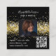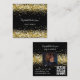 A black background. Decorated with faux gold confetti. Personalise and add your name, title, profile photo, phone number, mail, website adsress, qr code to your website or social media account.