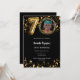 A modern, stylish photo invitation for a 70th birthday party. A classic black background, decorated with faux gold stars. Personalise and add your party details.