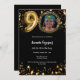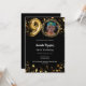 A modern, stylish photo invitation for a 90th birthday party. A classic black background, decorated with golden stars. Personalise and add your party details.