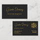 Promote your professional brand with this elegant black and gold business card featuring a modern script name and clean layout. Includes customisable fields for company name, job title, email, website, and social media icons. A built-in QR code makes it easy to link to your digital portfolio or contact page. Perfect for real estate agents, consultants, beauty professionals, photographers, or any modern entrepreneur. Sophisticated design with timeless appeal — ready to personalise for your business.