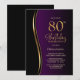 Black Gold Purple 80th Birthday Party Invitation