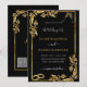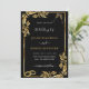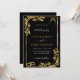 Custom Colours and Fonts - Design Your Own Personalised Golden Floral Frame with Wedding Rings and Champagne Toast Glasses Black and Gold Wedding Invitations Example with QR Code - by MIGNED - Create Your Unique Wedding Invite - Resize and move elements with Customisation tool. Choose / Add Your Favourite Background and Text Colours / Fonts / Size !Congratulations to the Newlyweds :)