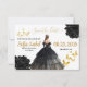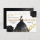 Make a bold statement for your 15th birthday celebration with this Elegant Black and Gold Quinceañera Save the Date card. Featuring a stunning Gothic-style black ball gown illustration and shimmering gold butterflies, this design is perfect for the teenager who wants a Royal Masquerade or Enchanted Night theme.